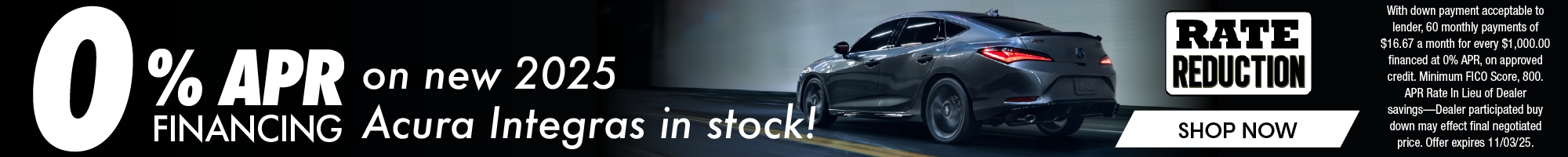 For well-qualified clients who meet the Military Appreciation Offer criteria, subject to approval by AFS. Offer is for an eligible 2024 or newer ZDX or 2025 or newer Integra, ADX, TLX, RDX, or MDX vehicle. Only one $750 Military Appreciation Offer per vehicle. $750 towards capitalized cost reduction or down payment assistance with the lease or purchase of an eligible new and not previously reported sold Acura vehicle. Offer cannot be combined with Zero Due at Signing leases. Offer applies to eligible Active-Duty U.S. Military and Ready Reserve and their spouses; eligible U.S. Military Veterans within two years of separation from active service and their spouses; eligible U.S. Military Retirees within two years of separation from active service and their spouses; and eligible Gold Star family members. Offer not valid on Acura Certified Pre-Owned vehicles or used vehicles. Offer valid through March 31, 2026 and may be terminated at any time. NOTE: During the term of the retail installment finance contract or lease with Acura Financial Services, buyer may not take their vehicle outside of the United States without prior written consent of Acura Financial Services. During the term of the retail installment finance contract or lease, buyer must notify Acura Financial Services immediately of any change in buyer's address.