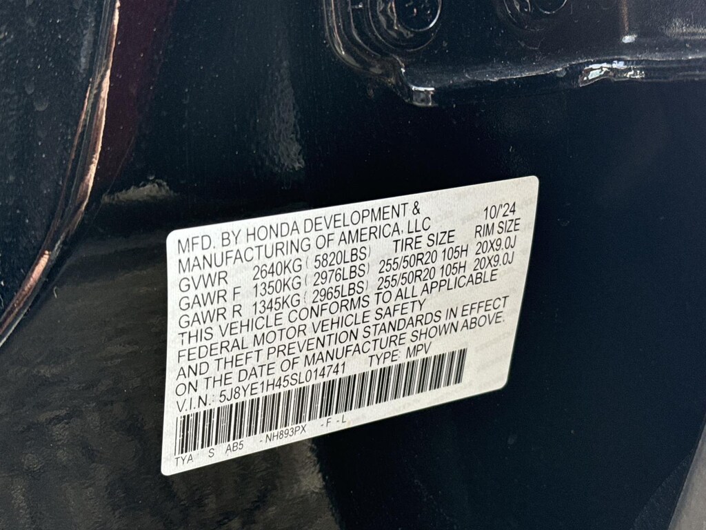- Front tires: 255/50HR20.0