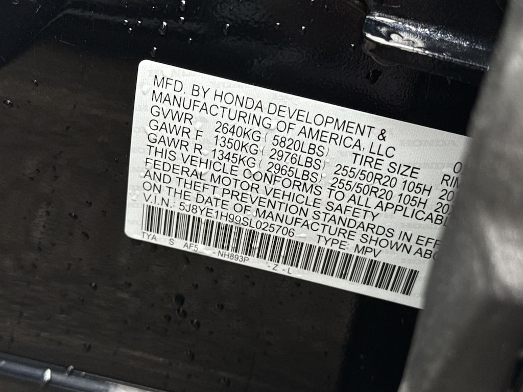 - Front tires: 255/50HR20.0
