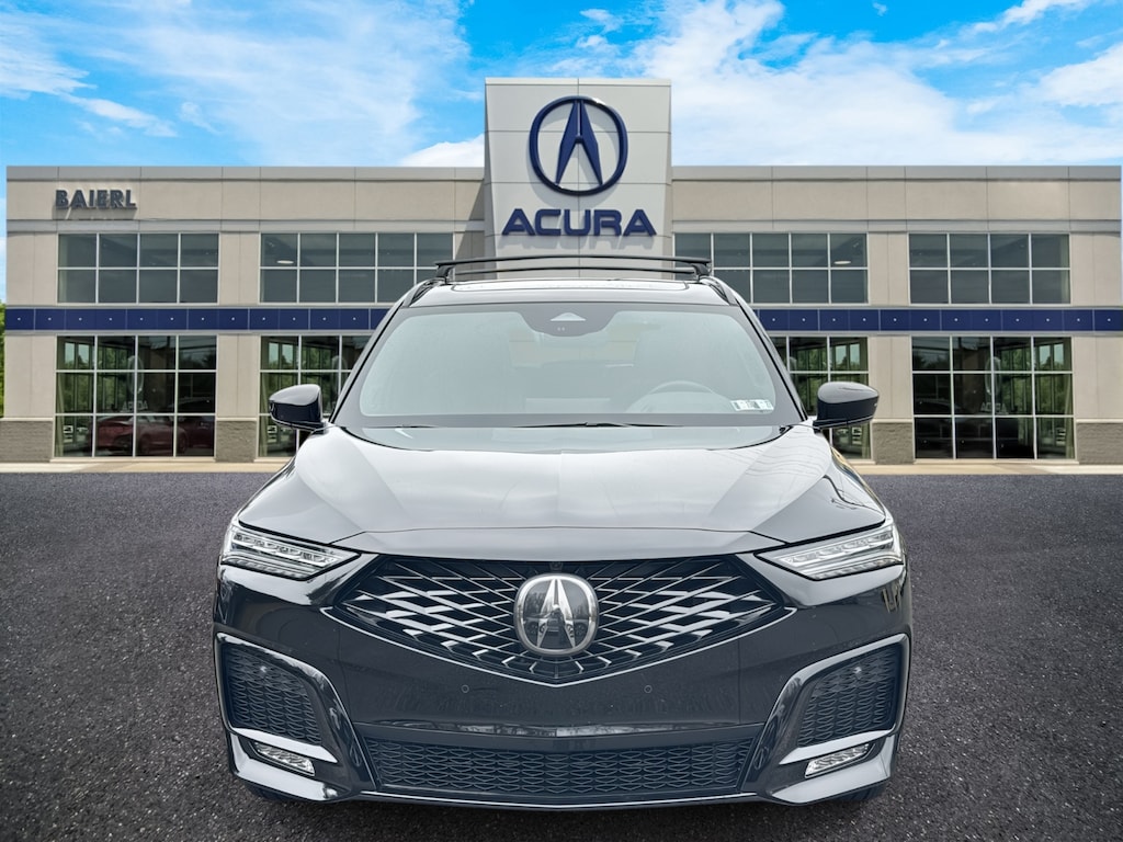 Baierl Acura is pleased to offer this outstanding 2025 Acura MDX in Majestic Black Pearl. This vehicle has been through our award winning factory trained service department*** and comes with the following features; Theres no back-and-forth, we offer one fair price, CLEAN ONE OWNER CARFAX, HEATED AND VENTILATED FRONT SPORT SEATS, QUILTED PERFORATED PREMIUM MILANO LEATHER SEATS, HEATED REAR SEATS, HEATED SPORT STEERING WHEEL, PANORAMIC ROOF SYSTEM, ACURA NAVIGATION SYSTEM, BANG & OLUFSEN PREMIUM AUDIO SYSTEM, APPLE CARPLAY / ANDROID AUTO, SIRIUSXM, DUAL ZONE CLIMATE CONTROL WITH HVAC MEMORY, HEADS-UP DISPLAY, ADAPTIVE CRUISE CONTROL WOTH TRAFFIC STOP / GO, ACURA LINK REAL-TIME TRAFFIC DISPLAY, COLLISION MITIGATION BRAKING SYSTEM, BLIND SPOT INFORMATION SYSTEM, AERIAL VIEW CAMERA WITH REAR WASHER, REAR CROSS TRAFFIC ALERT WITH REAR CROSS TRAFFIC BRAKING, 20 BLACK ALUMINUM ALLOY WHEELS, POWER LIFGATE, Ebony w/Curvilinear Quilted Perforated Premium Milano Leather Seats, 19 Speakers, 3rd row seats: split-bench, 4-Wheel Disc Brakes, ABS brakes, AM/FM radio, Anti-whiplash front head restraints, Apple CarPlay/Android Auto, Audio memory, Auto High-beam Headlights, Auto tilt-away steering wheel, Auto-dimming Rear-View mirror, Brake assist, Bumpers: body-color, Compass, Curvilinear Quilted Perforated Premium Milano Leather Seats, Delay-off headlights, Driver door bin, Driver vanity mirror, Dual front impact airbags, Dual front side impact airbags, Electronic Stability Control, Emergency communication system: AcuraLink, Exterior Parking Camera Rear, Four wheel independent suspension, Front anti-roll bar, Front Center Armrest, Front dual zone A/C, Front fog lights, Front reading lights, Fully automatic headlights, Garage door transmitter: HomeLink, Heads-Up Display, Heated and Ventilated Front Sport Seats, Heated door mirrors, Heated rear seats, Heated Sports Steering Wheel, Heated steering wheel, HVAC memory, Illuminated entry, Knee airbag, Lane departure: Lane Keeping Assist System (LKAS) active, Leather steering wheel, Low tire pressure warning, Memory seat, Navigation system: Google built-in (3-Years Unlimited Data Plan for In-Vehicle Apps), Occupant sensing airbag, Outside temperature display, Overhead airbag, Overhead console, Panic alarm, Passenger door bin, Passenger vanity mirror, Power door mirrors, Power driver seat, Power Liftgate, Power moonroof, Power passenger seat, Power steering, Power windows, Radio data system, Radio: Bang & Olufsen Premium Audio System, Rear air conditioning, Rear anti-roll bar, Rear reading lights, Rear seat center armrest, Rear window defroster, Rear window wiper, Remote keyless entry, Security system, Speed control, Speed-sensing steering, Speed-Sensitive Wipers, Split folding rear seat, Spoiler, Sport steering wheel, Steering wheel memory, Steering wheel mounted audio controls, Tachometer, Telescoping steering wheel, Tilt steering wheel, Traction control, Trip computer, Turn signal indicator mirrors, Wheels: 20 x 9J Aluminum Alloy.