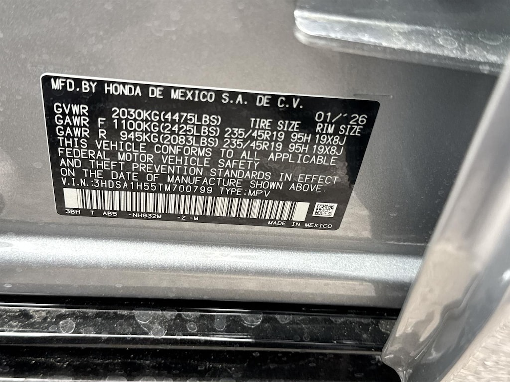 - Front tires: 235/45WR19.0