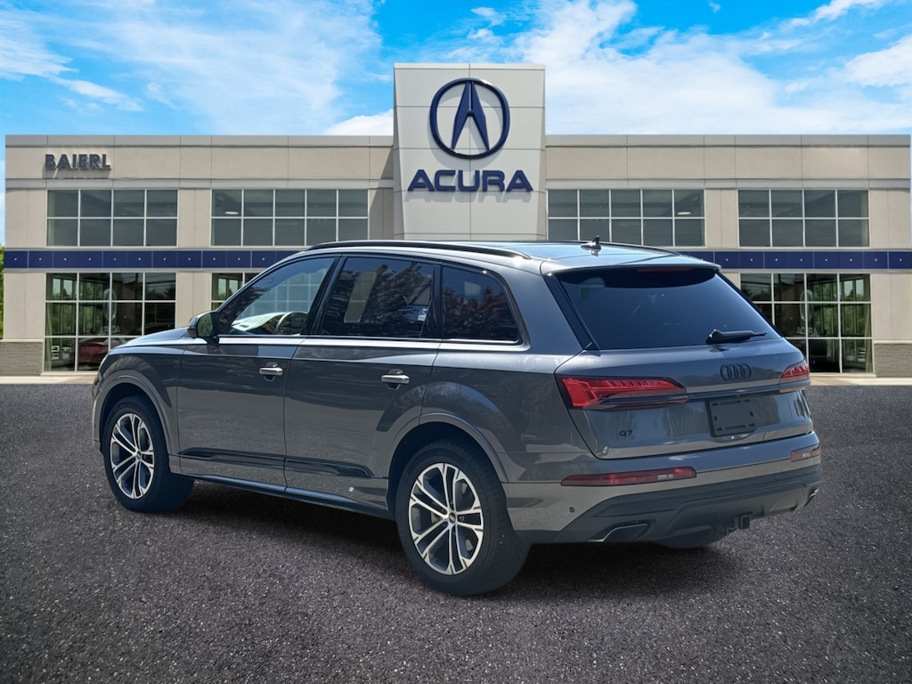 Baierl Acura is pleased to offer this fantastic 2025 Audi Q7 in Samurai Gray Metallic. This vehicle has been through our award winning factory trained service department*** and comes with the following features; Theres no back-and-forth, we offer one fair price, EXECUTIVE PACKAGE, PREMIUM PLUS PACKAGE, BLACK OPTIC PACKAGE, HEATED AND VENTILATED FRONT SEATS, HEATED STEERING WHEEL, PANORAMIC ROOF SYSTEM, AUDI NAVIGATION PLUS WITH TOUCH RESPONSE, BANG & OLUFSEN 3D PREMIUM SOUND SYSTEM, TOP-VIEW CAMERA SYSTEM, WIRELESS PHONE CHARGING PAD, HEATED REAR SEATS, DUAL-PANE ACOUSTIC GLASS FOR SIDE WINDOWS, SUNSHADES FOR REAR DOORS AND TAILGATE, 4-ZONE CLIMATE CONTROL, 20 5-DOUBLE-SPOKE DESIGN WHEELS, ADAPTIVE CRUISE CONTROL WITH LANE GUIDANCE, LANE DEPARTURE WARNING SYSTEM, REAR CROSS TRAFFIC WARNING SYSTEM, BLIND SPOT WARNING SYSTEM, LED INTERIOR LIGHTING PLUS PACKAGE, Q7 45 Premium Plus quattro, 4D Sport Utility, 2.0L 4-Cylinder TFSI, 8-Speed Automatic with Tiptronic, quattro, Samurai Gray Metallic, Black w/Leather Seating Surfaces, 3rd row seats: bench, 4-Wheel Disc Brakes, 7-Pin Adapter, ABS brakes, Anthracite Gray Audi Rings, Audi Beam Rings, Audi Guard Protection Kit, Auto High-beam Headlights, Auto-dimming door mirrors, Auto-dimming Rear-View mirror, Bang & Olufsen Premium Sound System w/3D Sound, Black Door Blades, Black Exterior Trim, Black Grille, Black Optic Package, Black Roof Rails, Black Window Surrounds, Brake assist, Bumpers: body-color, Compass, Convenience Package, Convenience Package (DISC), Dark Chrome Exhaust Tips, Delay-off headlights, Driver door bin, Driver vanity mirror, Dual front impact airbags, Dual front side impact airbags, Dual-Pane Acoustic Glass, Electronic Stability Control, Emergency communication system: Audi connect CARE, Executive Package, Exterior Parking Camera Rear, Four wheel independent suspension, Four-Zone Automatic Climate Control, Front anti-roll bar, Front Bucket Seats, Front fog lights, Front reading lights, Front Seats w/Ventilation, Fully automatic headlights, Garage door transmitter: HomeLink, Genuine wood door panel insert, Heated door mirrors, Heated Front Bucket Seats, Heated front seats, Heated Rear Seats, Heated Steering Wheel, Illuminated Door Sills, Illuminated entry, Leather Seating Surfaces, Leather Shift Knob, Leather steering wheel, LED Interior Lighting Package Plus, Low tire pressure warning, Memory seat, Navigation system: Audi MMI Navigation plus with Touch Response, Occupant sensing airbag, Outside temperature display, Overhead airbag, Overhead console, Passenger door bin, Passenger vanity mirror, Power door mirrors, Power driver seat, Power Liftgate, Power moonroof: Panoramic, Power passenger seat, Power steering, Power windows, Premium Plus Package, Privacy Trunk Cover, Rain sensing wipers, Rear air conditioning, Rear anti-roll bar, Rear Door/Side Windows & Tailgate Sunshades, Rear fog lights, Rear reading lights, Rear seat center armrest, Rear side impact airbag, Rear window defroster, Reclining 3rd row seat, Remote keyless entry, Security system, Speed control, Speed-sensing steering, Split folding rear seat, Spoiler, Steering wheel memory, Steering wheel mounted audio controls, Tachometer, Telescoping steering wheel, Top View Camera System, Traction control, Traffic Sign Recognition, Trailer Hitch, Turn signal indicator mirrors, Wheels: 20 5-Double-Spoke Bicolor Finish, Wireless Phone Charging Pad.