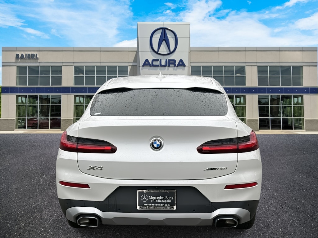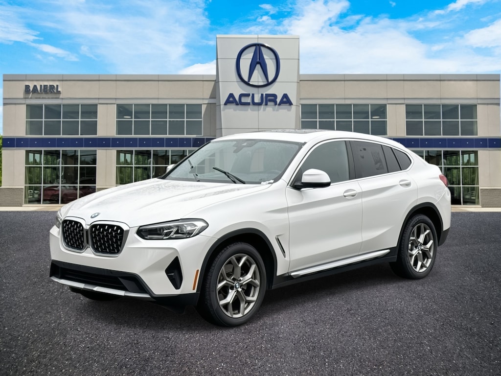 Baierl Acura is proud to offer this great 2022 BMW X4 in Mineral White Metallic. This vehicle has been through our award winning factory trained service department*** and comes with the following features; Theres no back-and-forth, we offer one fair price, HEATED FRONT SEATS, HEATED STEERING WHEEL, POWER MOONROOF, NAVIGATION WITH LIVE COCKPIT PRO, HI-FI SOUND SYSTEM, APPLE CARPLAY / ANDROID AUTO, ENHANCED BLUETOOTH WITH WI-FI HOTSPOT, SIRIUSXM WITH 360L, AMBIENT LIGHTING, COMFORT ACCESS KEYLESS ENTRY, ACTIVE BLIND SPOT DETECTION SYSTEM, LANE DEPARTURE WARNING SYSTEM, FRONTAL COLLISION WARNING WITH CITY COLLISION MITIGATION SYSTEM, REAR CROSS TRAFFIC ALERT SYSTEM, 19 Y-SPOKE WHEELS IN FERIC GREY, 12 Speakers, 4-Wheel Disc Brakes, ABS brakes, AM/FM radio: SiriusXM with 360L, Anti-whiplash front head restraints, Apple CarPlay & Android Auto Compatibility, Auto High-beam Headlights, Auto-dimming door mirrors, Auto-dimming Rear-View mirror, BMW Assist eCall, BMW TeleServices, Brake assist, Bumpers: body-color, Comfort Access Keyless Entry, Connected Package Pro, ConnectedDrive Services, Convenience Package, Driver door bin, Driver vanity mirror, Dual front impact airbags, Dual front side impact airbags, Electronic Stability Control, Emergency communication system: BMW Assist eCall, Enhanced Bluetooth, Exterior Parking Camera Rear, Four wheel independent suspension, Front anti-roll bar, Front Bucket Seats, Front Center Armrest, Front dual zone A/C, Front reading lights, Garage door transmitter, Genuine wood dashboard insert, Genuine wood door panel insert, Heated door mirrors, Heated Front Seats, Heated Steering Wheel, Hi-Fi Sound System, Illuminated entry, Knee airbag, Live Cockpit Pro w/Navi, Low tire pressure warning, Lumbar Support, Memory seat, Navigation System, Occupant sensing airbag, Outside temperature display, Overhead airbag, Panic alarm, Passenger vanity mirror, Perforated SensaTec Upholstery, Power door mirrors, Power driver seat, Power Front Seats, Power Liftgate, Power moonroof: Panorama, Power steering, Power windows, Radio data system, Rear air conditioning, Rear anti-roll bar, Rear reading lights, Rear seat center armrest, Rear window defroster, Remote keyless entry, Security system, Speed control, Speed-sensing steering, Speed-Sensitive Wipers, Split folding rear seat, Spoiler, Sport steering wheel, Steering wheel mounted audio controls, Tachometer, Telescoping steering wheel, Traction control, Trip computer, Turn signal indicator mirrors, Wheels: 19 x 7.5 Y-Spoke (Style 693), WiFi Hotspot.