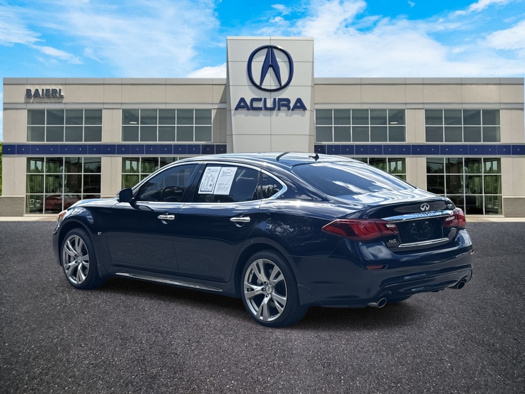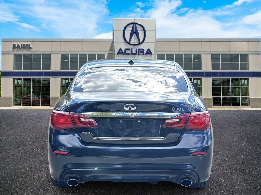 Baierl Acura is excited to offer this outstanding-looking 2015 INFINITI Q70L in Hermosa Blue. This vehicle has been through our award winning factory trained service department*** and comes with the following features; Local Trade, Theres no back-and-forth, we offer one fair price, Sold 100% As Is, Q70L 3.7X, 4D Sedan, 3.7L V6 DOHC 24V VVEL, 7-Speed Automatic, AWD, Hermosa Blue, Stone Leather, 20 Split 5-Spoke Aluminum-Alloy Wheels, 4-Wheel Disc Brakes, 6 Speakers, ABS brakes, Activation Disclaimer, Air Conditioning, AM/FM radio: SiriusXM, Anti-whiplash front head restraints, Around View Monitor w/Moving Object Detection, Audio memory, Auto tilt-away steering wheel, Auto-dimming door mirrors, Auto-dimming Rear-View mirror, Automatic temperature control, Bose 2-Channel 10 -Speaker Premium Audio System, BOSE Studio Surround Sound System, Brake assist, Bumpers: body-color, Carpeted Trunk Mat/Cargo Net & First Aid Kit, Climate-Controlled Front Seats, Delay-off headlights, Deluxe Touring Package, Door auto-latch, Driver door bin, Driver vanity mirror, Dual front impact airbags, Dual front side impact airbags, Electronic Stability Control, Four wheel independent suspension, Front anti-roll bar, Front Bucket Seats, Front Center Armrest w/Storage, Front dual zone A/C, Front fog lights, Front reading lights, Fully automatic headlights, Garage door transmitter: HomeLink, Genuine wood console insert, Genuine wood dashboard insert, Genuine wood door panel insert, Heated door mirrors, Heated Front Bucket Seats, Heated front seats, Heated Steering Wheel, Illuminated entry, Illuminated Kick Plates, INFINITI Connection System, INFINITI Voice Recognition for Audio, Leather Appointed Seat Trim, Leather Shift Knob, Leather steering wheel, Leatherette Seat Trim, Literature Kit, Memory seat, Occupant sensing airbag, Outside temperature display, Overhead airbag, Overhead console, Panic alarm, Passenger vanity mirror, Performance Tire & Wheel Package, Power driver seat, Power moonroof, Power passenger seat, Power Rear Sunshade, Power steering, Power windows, Premium Package, Premium Silver-Powdered White Ash Wood Accents, Premium Stitched Meter Hood, Radio data system, Radio: AM/FM/CD/MP3 Playback Capability, Radio: INFINITI Hard Drive Navigation System, Rear anti-roll bar, Rear reading lights, Rear seat center armrest, Rear Sonar System, Rear window defroster, Remote keyless entry, Security system, Semi-Aniline Leather Appointed Seating, Speed control, Speed-sensing steering, Sport Brakes, Steering wheel memory, Steering wheel mounted audio controls, Suede-Like Headliner, Telescoping steering wheel, Tilt steering wheel, Traction control, Trip computer, Unique Quilted Seat Pattern.
