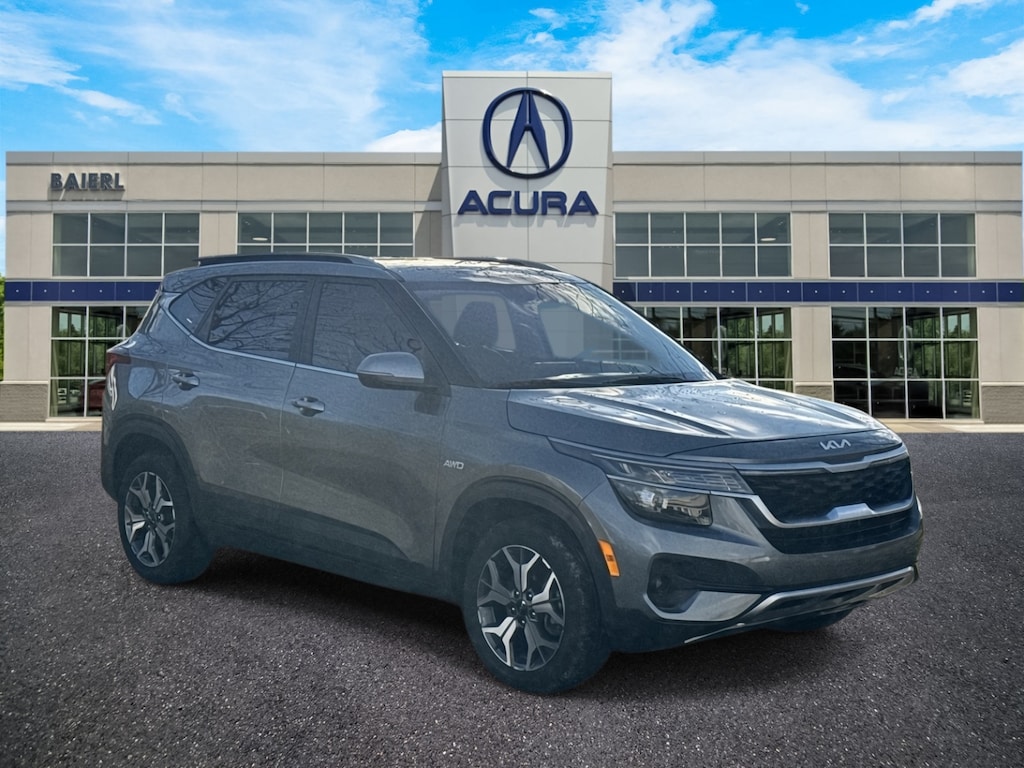 Baierl Acura is pumped up to offer this beautiful 2023 Kia Seltos in Steel Gray. This vehicle has been through our award winning factory trained service department*** and comes with the following features; Theres no back-and-forth, we offer one fair price, HEATED FRONT SEATS, SOFINA PREMIUM LEATHERETTE SEATS TRIM, POWER SUNROOF, 10.25 TOUCHSCREEN WITH NAVIGATION, APPLE CARPLAY / ANDROID AUTO, SIRIUSXM, REAR CAMERA SYSTEM, WIRELESS PHONE CHARGER, BLIND SPOT COLLISION-AVOIDANCE ASSIST WITH REAR CROSS-TRAFFIC COLLISION AVOIDANCE ASSIST, LANE DEPARTURE WARNING SYSTEM, LANE KEEPING ASSIST & LANE FOLLOWWING ASSIST, FORWARD COLLISION AVOIDANCE ASSIST WITH PEDESTRIAN NOTIFICATION, 17 MACHINED-FINISHED ALLOY WHEELS, 4-Wheel Disc Brakes, 6 Speakers, ABS brakes, AM/FM radio: SiriusXM, Apple CarPlay & Android Auto, Automatic temperature control, Brake assist, Bumpers: body-color, Carpet Floor Mats, Driver door bin, Driver vanity mirror, Dual front impact airbags, Dual front side impact airbags, Electronic Stability Control, Emergency communication system: 911 Connect, Exterior Parking Camera Rear, Four wheel independent suspension, Front anti-roll bar, Front Center Armrest, Front fog lights, Front reading lights, Fully automatic headlights, Heated door mirrors, Heated Front Bucket Seats, Illuminated entry, Leather Shift Knob, Low tire pressure warning, Navigation System, Occupant sensing airbag, Outside temperature display, Overhead airbag, Overhead console, Panic alarm, Passenger door bin, Passenger vanity mirror, Power door mirrors, Power driver seat, Power moonroof, Power steering, Power windows, Radio: AM/FM/MP3 Display Audio w/Navigation, Rear seat center armrest, Rear window defroster, Remote keyless entry, Security system, Sofino Premium Leatherette Seat Trim, Speed control, Speed-sensing steering, Split folding rear seat, Spoiler, Steering wheel mounted audio controls, Tachometer, Telescoping steering wheel, Traction control, Trip computer, Turn signal indicator mirrors, Variably intermittent wipers, Wheels: 17 Alloy w/Machined Finish.