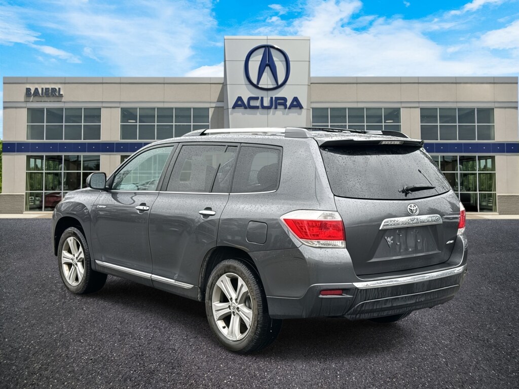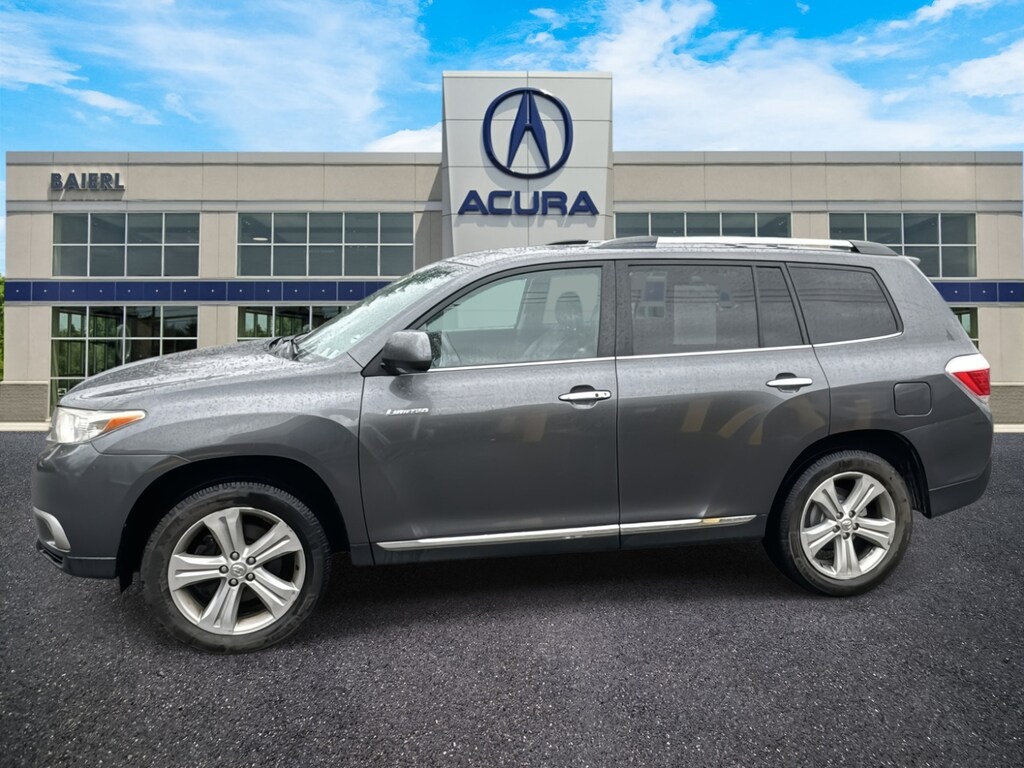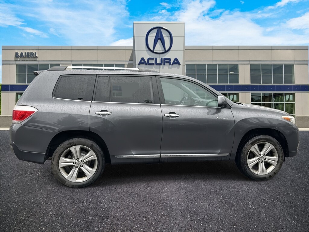 Baierl Acura is excited to offer this charming 2013 Toyota Highlander in Magnetic Gray Metallic. This vehicle has been through our award winning factory trained service department*** and comes with the following features; Theres no back-and-forth, we offer one fair price, Sold 100% As Is, HEATED FRONT BUCKET SEATS, PERFORATED LEATHER SEATING, POWER MOONROOF, NAVIGATION SYSTEM, JBL AM / FM / CD AUDIO SYSTEM, DUAL ZONE CLIMATE CONTROL, REAR HEAT AND AIR CONDITIONING, REAR CAMERA SYSTEM, SIRIUSXM, 19 5-SPOKE ALUMINUM ALLOY WHEELS, POWER LIFTGATE, 150 AMP ALTERNATOR, HEAVY DUTY ENGINE COOLER, SUPPLEMENTAL TRANSMISSION OIL COOLER, AWD, 3rd row seats: split-bench, 4-Wheel Disc Brakes, 9 Speakers, ABS brakes, AM/FM radio: SiriusXM, Anti-whiplash front head restraints, Auto-dimming Rear-View mirror, Brake assist, Bumpers: body-color, Delay-off headlights, Driver door bin, Driver vanity mirror, Dual front impact airbags, Dual front side impact airbags, Electronic Stability Control, Exterior Parking Camera Rear, Four wheel independent suspension, Front anti-roll bar, Front Bucket Seats, Front Center Armrest, Front dual zone A/C, Front fog lights, Front reading lights, Fully automatic headlights, Garage door transmitter, Heated door mirrors, Heated Front Bucket Seats, Illuminated entry, Knee airbag, Low tire pressure warning, Navigation System, Occupant sensing airbag, Outside temperature display, Overhead airbag, Overhead console, Panic alarm, Passenger door bin, Passenger vanity mirror, Perforated Leather Seat Material, Power door mirrors, Power driver seat, Power Liftgate, Power moonroof, Power passenger seat, Power steering, Power windows, Radio data system, Radio: JBL AM/FM/CD Display Audio w/Navigation, Rear air conditioning, Rear anti-roll bar, Rear reading lights, Rear window defroster, Rear window wiper, Remote keyless entry, Roof rack: rails only, Security system, Speed control, Speed-sensing steering, Split folding rear seat, Spoiler, Steering wheel mounted A/C controls, Steering wheel mounted audio controls, Tachometer, Telescoping steering wheel, Tilt steering wheel, Traction control, Trip computer, Variably intermittent wipers, Wheels: 19 x 7.5 5-Spoke Aluminum Alloy.