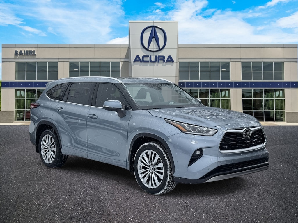 Baierl Acura is excited to offer this superb 2024 Toyota Highlander in Moon Dust. This vehicle has been through our award winning factory trained service department*** and comes with the following features; Balance of Factory Warranty, CLEAN ONE OWNER CARFAX, HEATED AND VENTILATED FRONT BUCKET SEATS, HEATED REAR SEATS, HEATED STEERING WHEEL, PANORAMIC ROOF SYSTEM, NAVIGATION SYSTEM, 12.3 TOYOTA MUTLIMEDIA AUDIO SYSTEM WITH JBL PREMIUM SPEAKERS, APPLE CARPLAY / ANDROID AUTO, HEADS-UP DISPLAY, ADAPTIVE FULL-SPEED RANGE DYNAMIC RADAR CRUSIE CONTROL WITH DISTANCE PACING, BLIND SPOT MONITOR, LANE CHANGE ASSIST WITH LANE TRACING ASSIST, EVASION ASSIST, FRONT COLLISION MITIGATION PRE-COLLISION SYSTEM, DUAL ZONE CLIMATE CONTROL, REAR HEAT AND AIR CONDITIONING, MEMORY DRIVER SEAT, PANORAMIC VIEW MONITOR, AWD, 11 Speakers, 20 Painted Alloy Wheels, 3rd row seats: split-bench, 4-Wheel Disc Brakes, ABS brakes, Active Cruise Control, Alloy wheels, AM/FM radio: SiriusXM, Apple CarPlay/Android Auto, Auto High-beam Headlights, Auto-dimming Rear-View mirror, Brake assist, Bumpers: body-color, Delay-off headlights, Digital Rearview Mirror w/HomeLink, Driver door bin, Driver vanity mirror, Dual front impact airbags, Dual front side impact airbags, Electronic Stability Control, Emergency communication system: Safety Connect (up to 10-year trial subscription), Exterior Parking Camera Rear, Four wheel independent suspension, Front anti-roll bar, Front Bucket Seats, Front Center Armrest, Front dual zone A/C, Front fog lights, Front reading lights, Fully automatic headlights, Garage door transmitter: HomeLink, Heads-Up Display, Heated door mirrors, Heated rear seats, Heated steering wheel, Heated/Ventilated Front Bucket Seats, High Grade LED Projector Headlights, Illuminated entry, Knee airbag, Leather Seat Trim, Leather Shift Knob, Leather steering wheel, Low tire pressure warning, Memory seat, Navigation System, Occupant sensing airbag, Outside temperature display, Overhead airbag, Overhead console, Panic alarm, Panoramic Moonroof, Panoramic View Monitor, Passenger door bin, Passenger vanity mirror, Platinum Package, Power door mirrors, Power driver seat, Power Liftgate, Power passenger seat, Power steering, Power windows, Radio: 12.3 Toyota Audio Multimedia w/JBL Premium, Rain sensing wipers, Rear air conditioning, Rear anti-roll bar, Rear reading lights, Rear window defroster, Rear window wiper, Reclining 3rd row seat, Remote keyless entry, Security system, Speed-sensing steering, Split folding rear seat, Spoiler, Steering wheel mounted audio controls, Tachometer, Telescoping steering wheel, Tilt steering wheel, Traction control, Trip computer, Turn signal indicator mirrors.